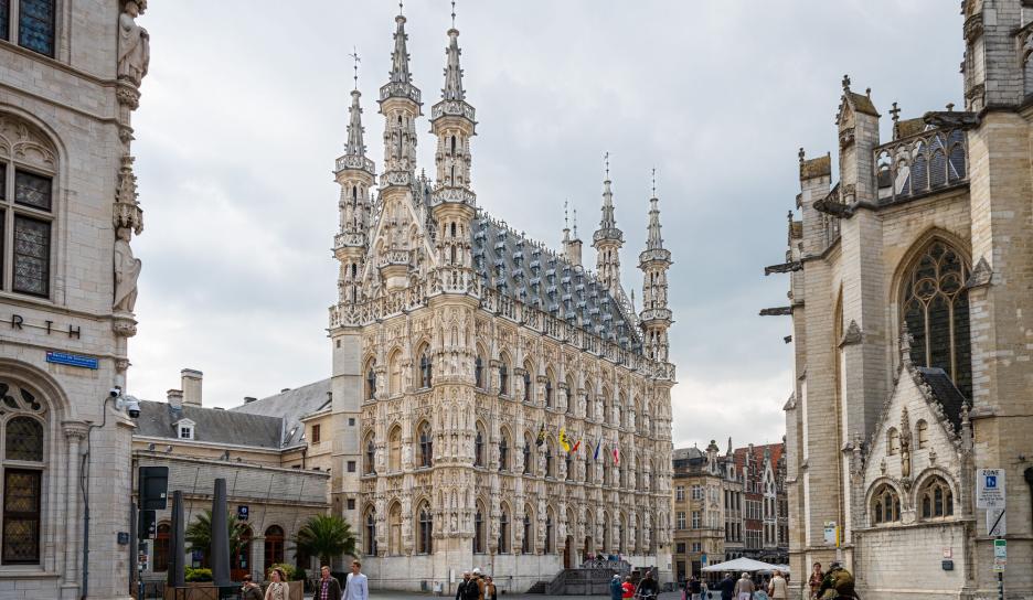 Das historische Rathaus ist der Stolz Leuvens. Es ist außerdem eines der bekanntesten gotischen Rathäuser der Welt. Der erste Stein wurde 1439 gelegt. Drei Baumeister und dreißig Jahre waren für den Bau notwendig. Die Leuvener ‘Hall of Fame’ zählt 235 Figuren, die erst nach dem Jahre 1850 in der Fassade gestellt wurden. Genau gegenüber befindet sich der Sankt-Peterskirche.