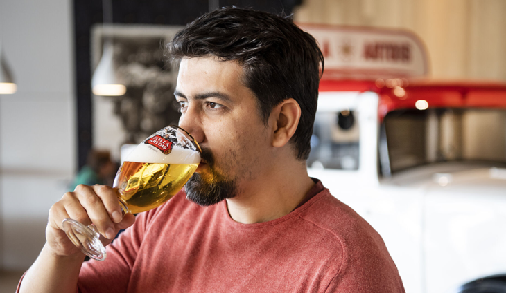 Nach der Führung werden die verschiedenen Biere in der Probierstube verkostet, während ihre spezifischen Eigenschaften erklärt werden. Marc serviert bei den Bieren regionale Häppchen.