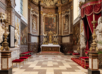 Une route pavée en pente douce traverse le cimetière et mène à l’entrée de l’église. Si vous possédez une carte de stationnement pour personnes handicapées, vous pouvez vous garer à l’entrée du musée PARCUM, situé à proximité. Les personnes à mobilité réduite peuvent également être conduites jusqu’à l’église. La différence de hauteur à l’entrée est comblée par une rampe d’accès.